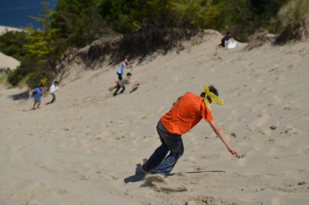 The Oregon dunes provide the perfect landscape for playing in the sand.
